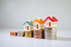 Miniature house on stack coins