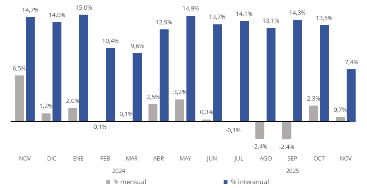 - La variación interanual de España lleva 45 meses (3,8 años) en positivo y sitúa el precio en noviembre en 14,10 euros el metro cuadrado